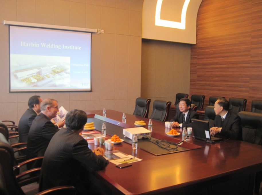 何實(shí)所長(zhǎng)首先對(duì)客人的來(lái)訪表示熱情歡迎,并簡(jiǎn)單介紹了焊接研究所的情況。樸東光秘書(shū)長(zhǎng)通過(guò)幻燈片向客人們展示了我所的發(fā)展歷程、機(jī)構(gòu)及業(yè)務(wù)分類(lèi)、科研、產(chǎn)業(yè)、質(zhì)檢、行業(yè)服務(wù)等方面的工作內(nèi)容和成效。克勞斯米德?tīng)柕婪蛳壬蛭宜氖⑶榻哟硎靖兄x,對(duì)哈焊所多方面卓有成效的成就表示欽佩和贊賞。雙方就焊接及連接技術(shù)的發(fā)展、培訓(xùn)及標(biāo)準(zhǔn)化、行業(yè)服務(wù)等內(nèi)容進(jìn)行了交流。何實(shí)所長(zhǎng)還向客人介紹了我所英文版焊接期刊《China