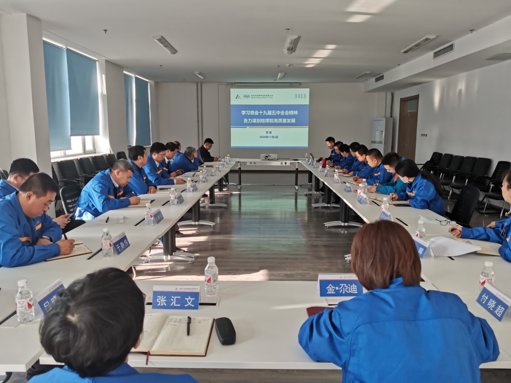 11月03日,哈焊院召開黨委理論學習中心組學習(擴大)會議,學習中國共產黨十九屆中央委員會第五次會議公報,深入領會黨的十九屆五中全會精神,研討哈焊院“十四五”戰略規劃。哈焊院黨委書記、董事長楊玉亭主持學習。