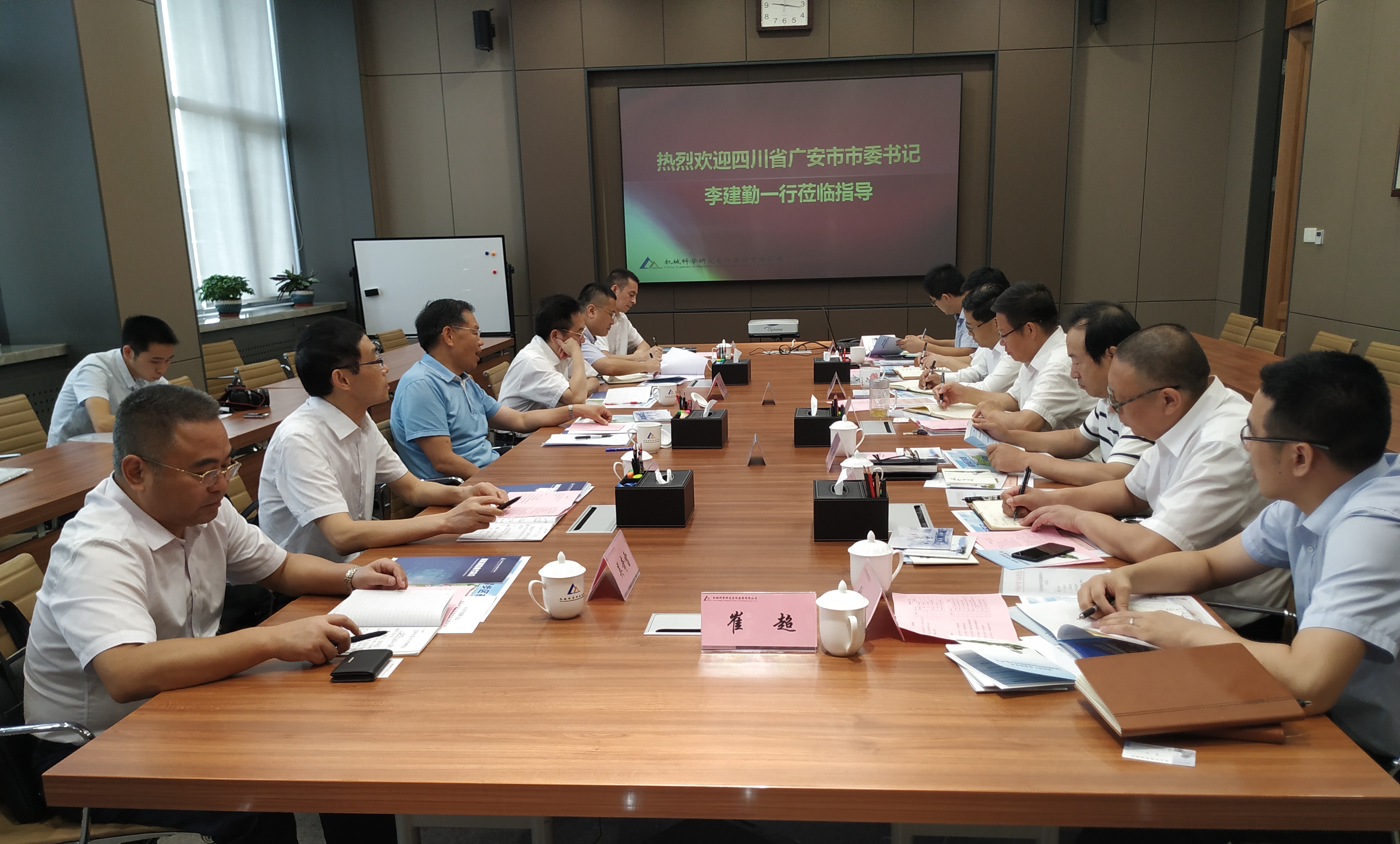 2019年8月12日上午,四川省廣安市市委書記李建勤一行到訪機械總院集團。集團黨委書記、董事長、總經(jīng)理王德成熱情接待了來訪客人并進行了會談交流,黨委委員、副總經(jīng)理單忠德主持會議。